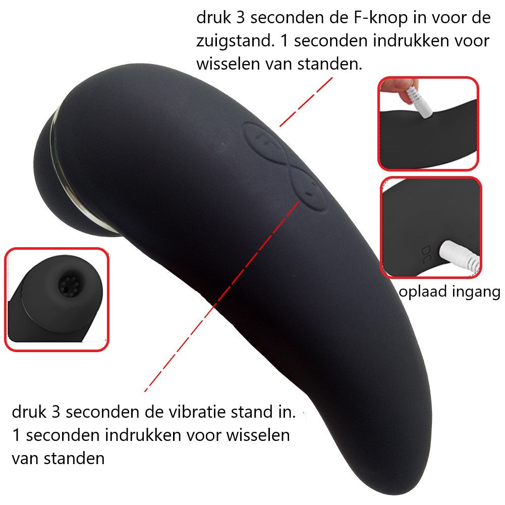 Bij dit speeltje draait alles om de dubbele stimulatie. De orale zuigend gevoel bij de clitoris. En de vibrerende penetratie bij de vagina op zoek naar de G-spot.
